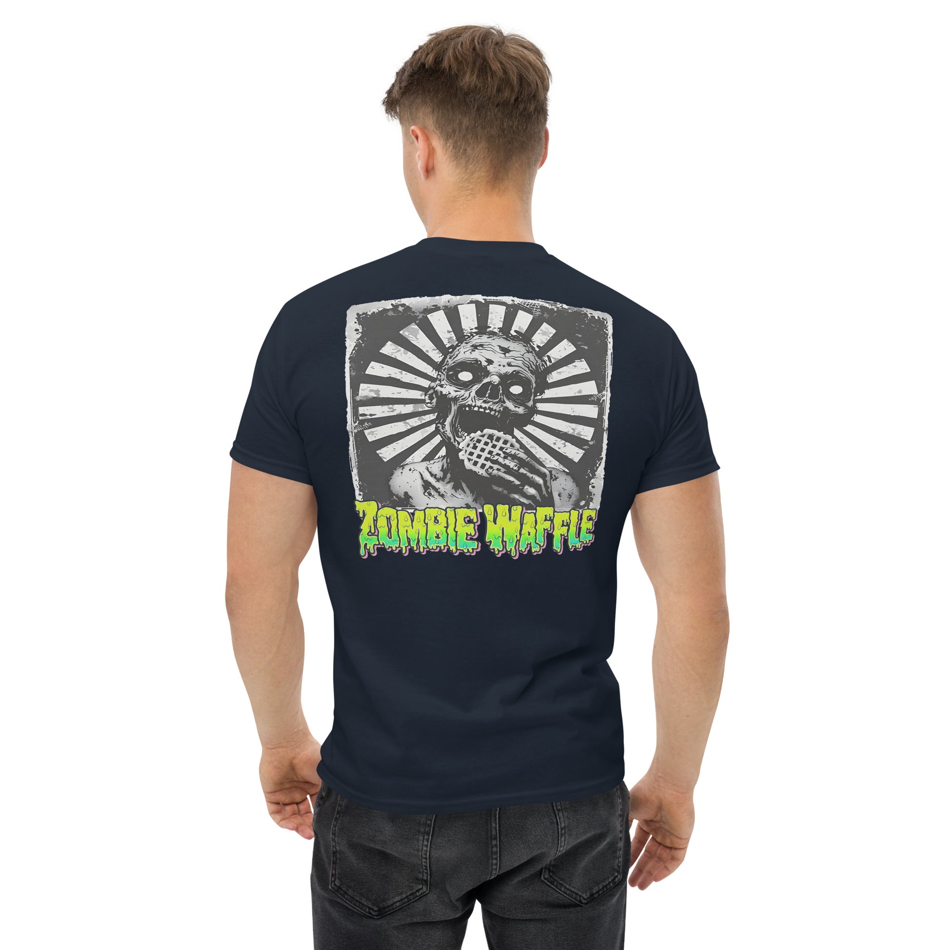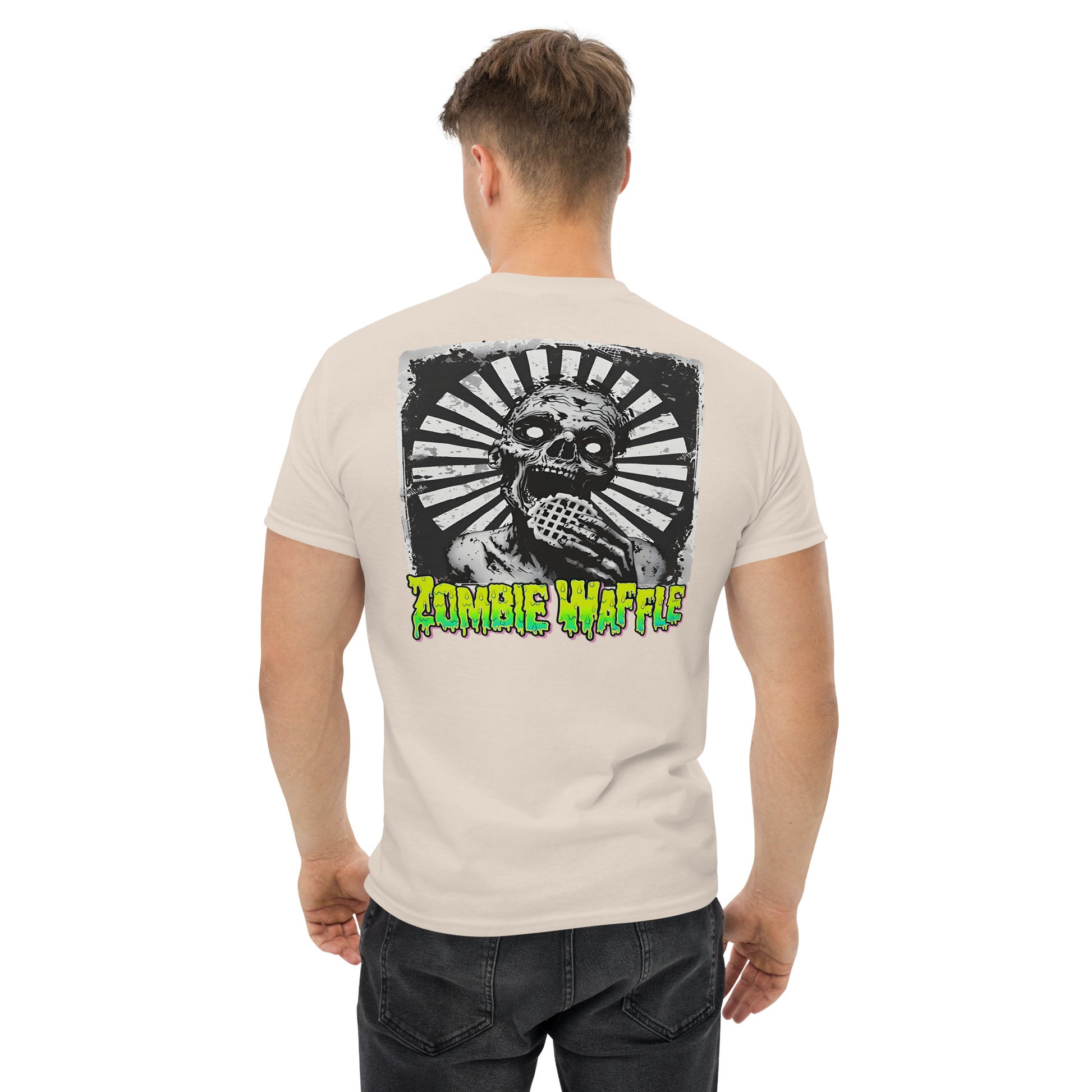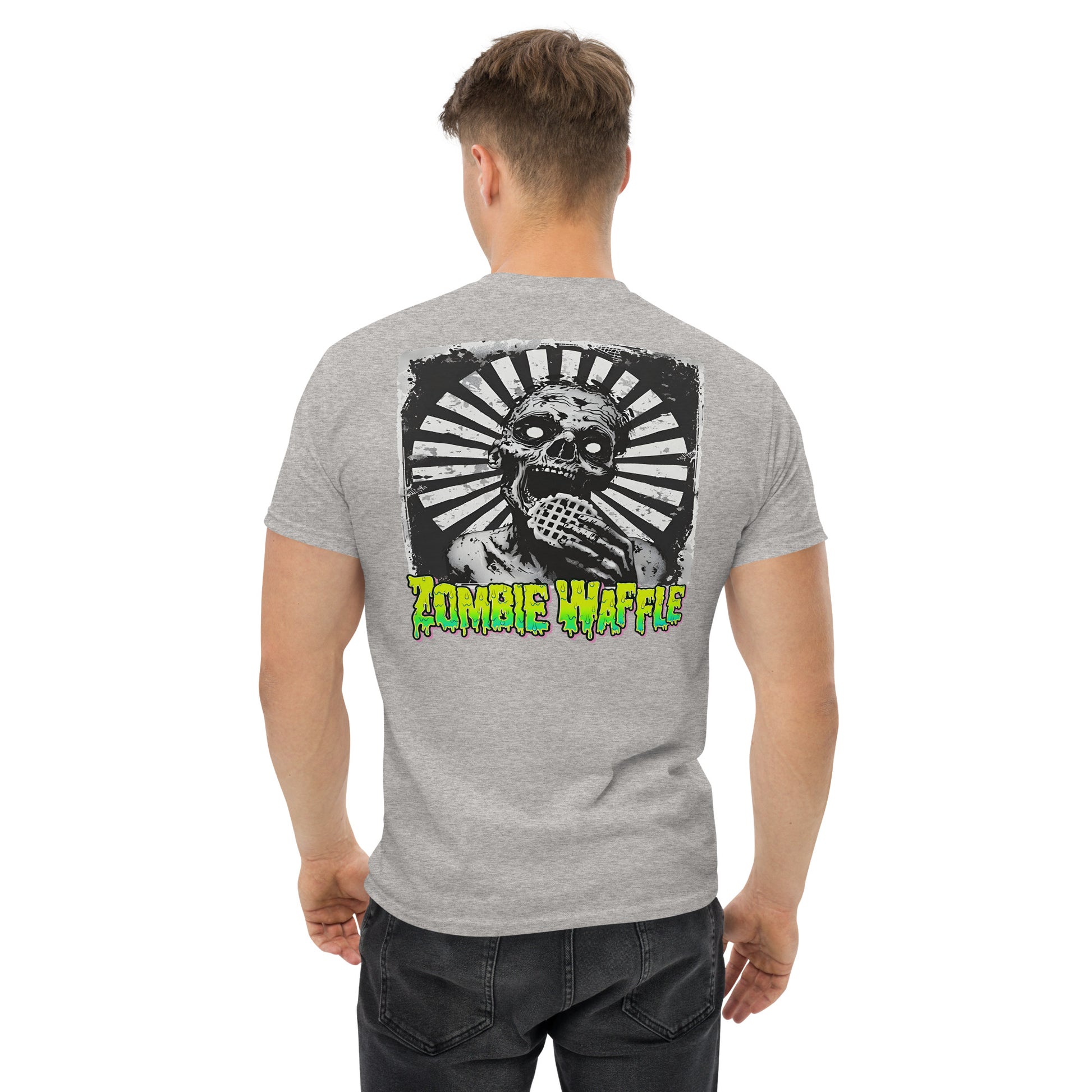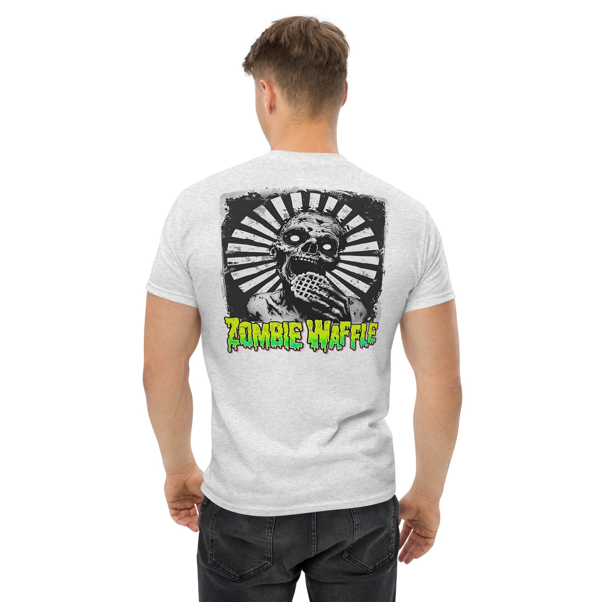 Zombie Eating a Waffle Men's Loose Fit Tee (Back Print)