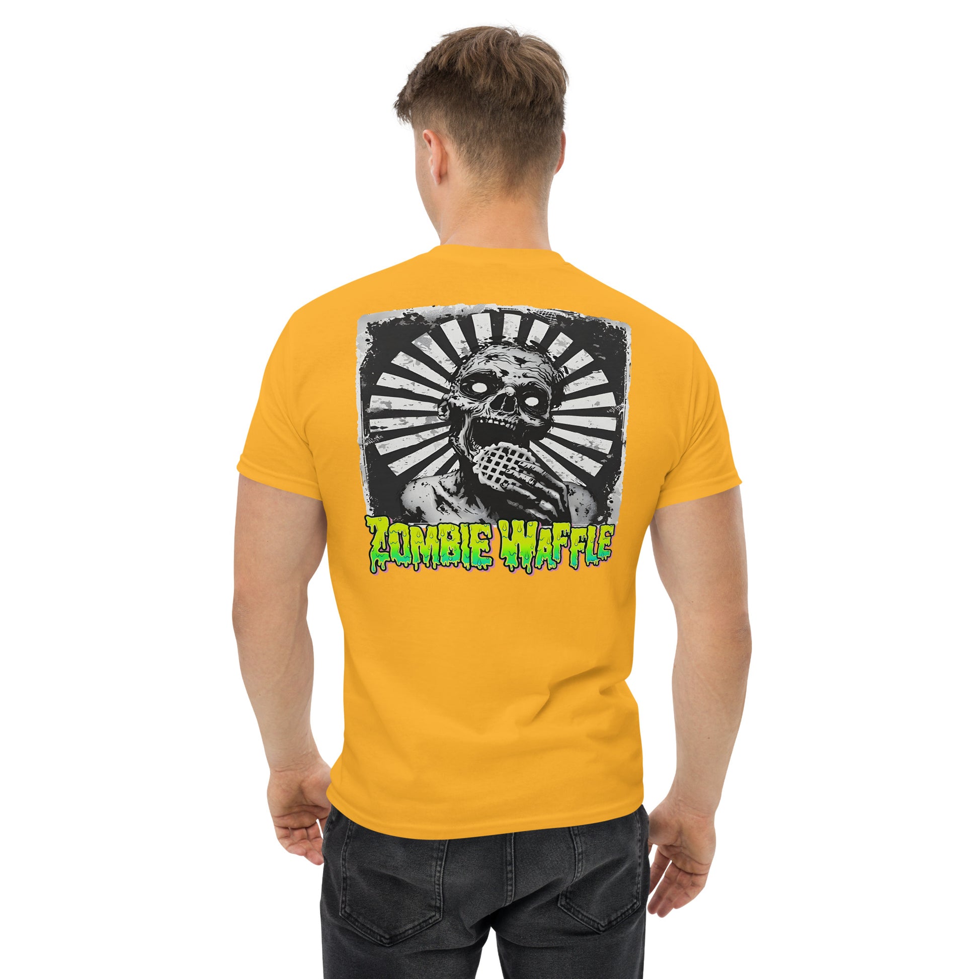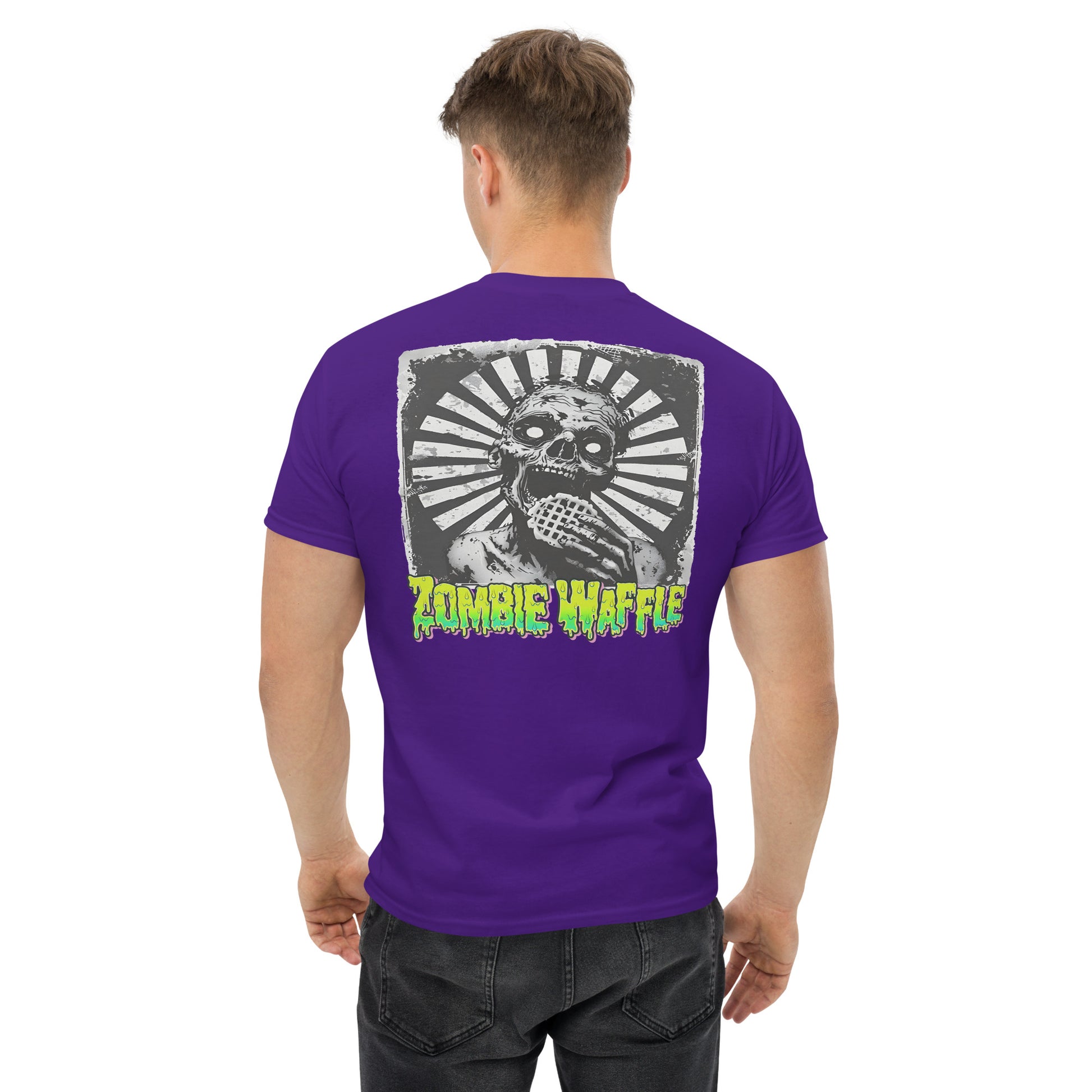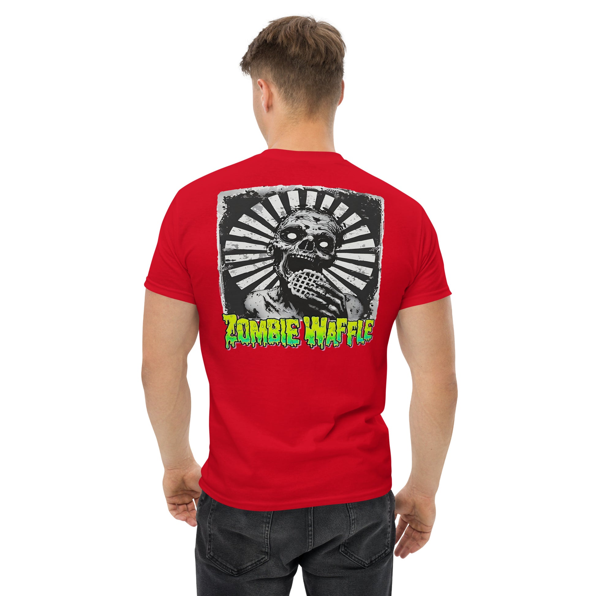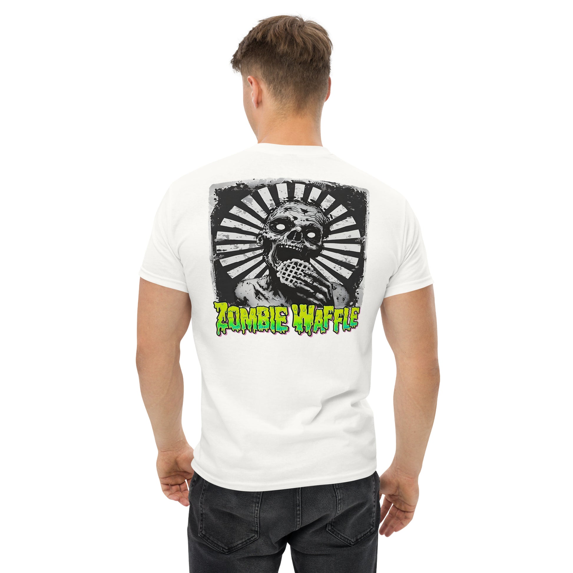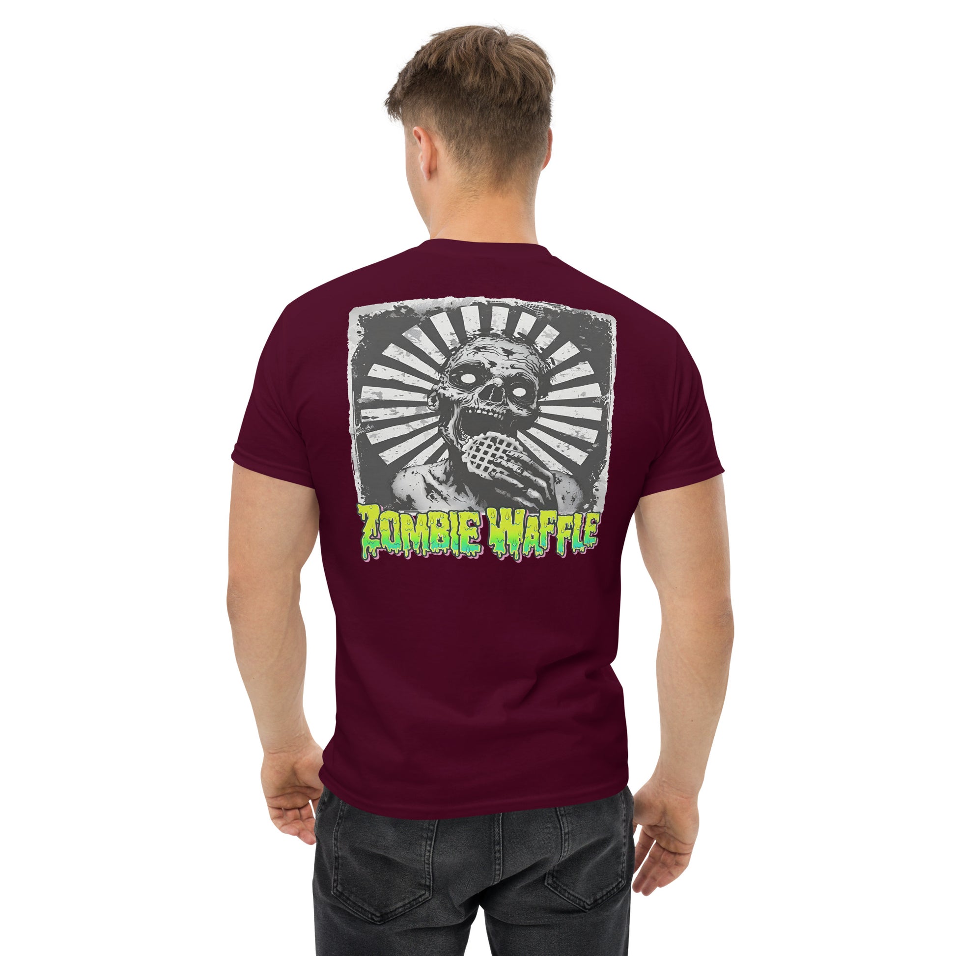 Zombie Eating a Waffle Men's Loose Fit Tee (Back Print)